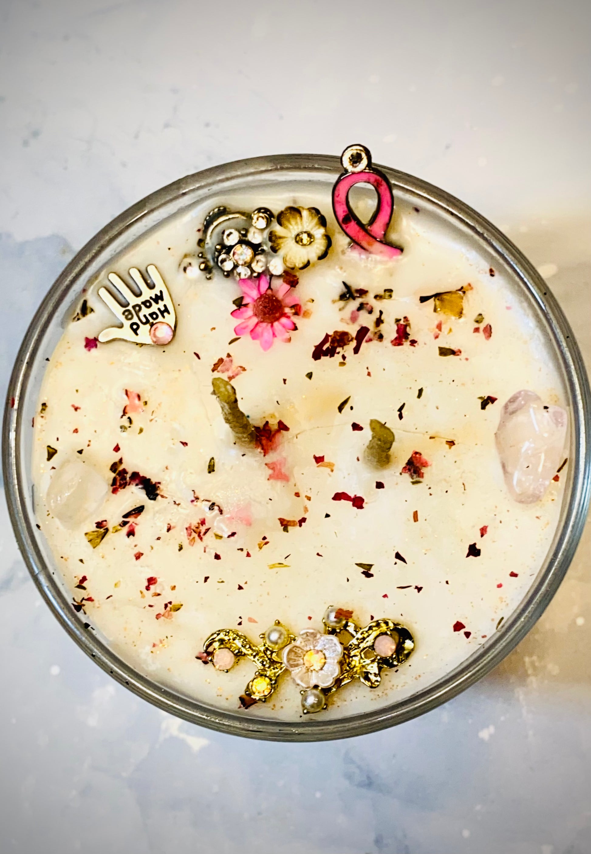 In honor of my moma, who lost her battle with breast cancer and also passed during Breast cancer awareness month 9 years ago, I decided to make a variety of candles for the families who lost any loved ones, for the survivors and family members affected. I want to make this month more positive and creating candles is what started my business and if my creations catch your eye, you’ll be happy with what you order because I make everything with love and it shows with my detailed designs. With that Being said no every candle is going to look like the ones in the pictures because they are handmade to order.