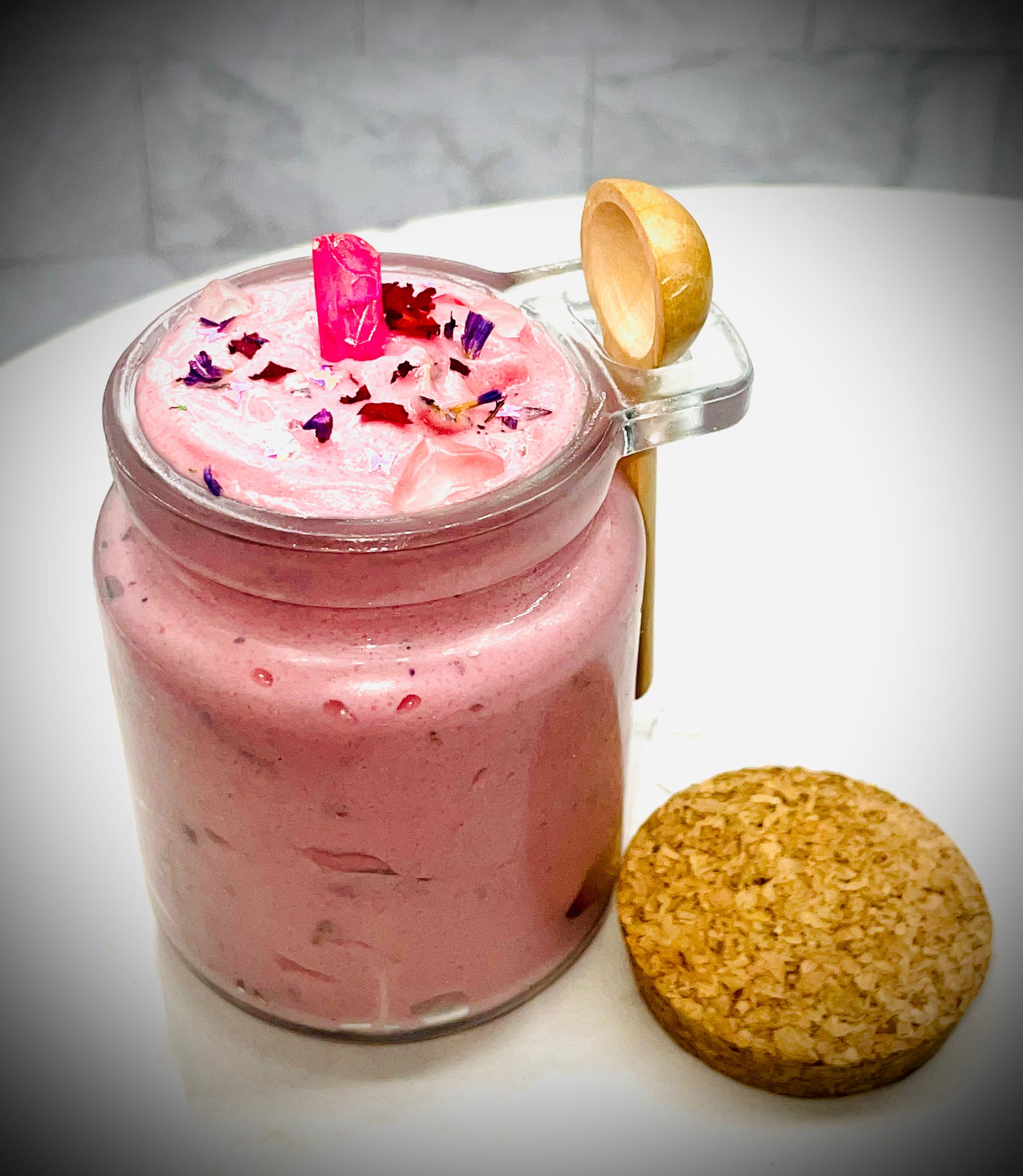 Heart chakra (cane sugar, rose petals w/ rose quartz gems) - Fear of commitment and feeling like you have to please others to be loved