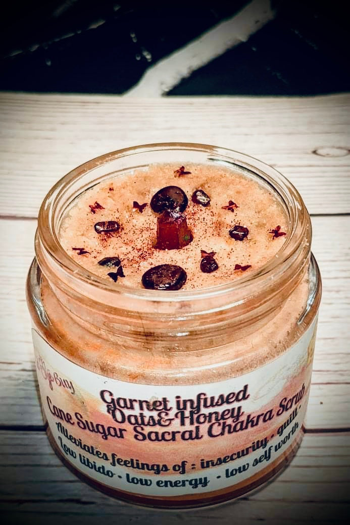 Sacral chakra (oats & honey scrub w/ garnet gems) Difficulty allowing yourself to become emotionally and sexually intimate