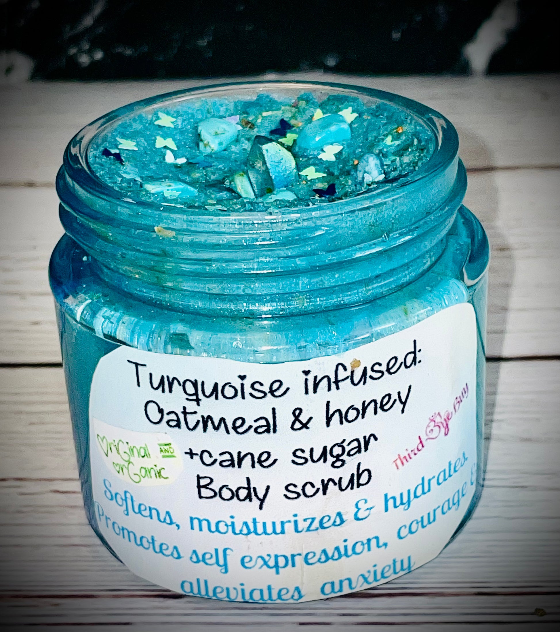 Throat chakra (oats & honey w/ turquoise gems) - Fear of speaking up and saying what you want or feel