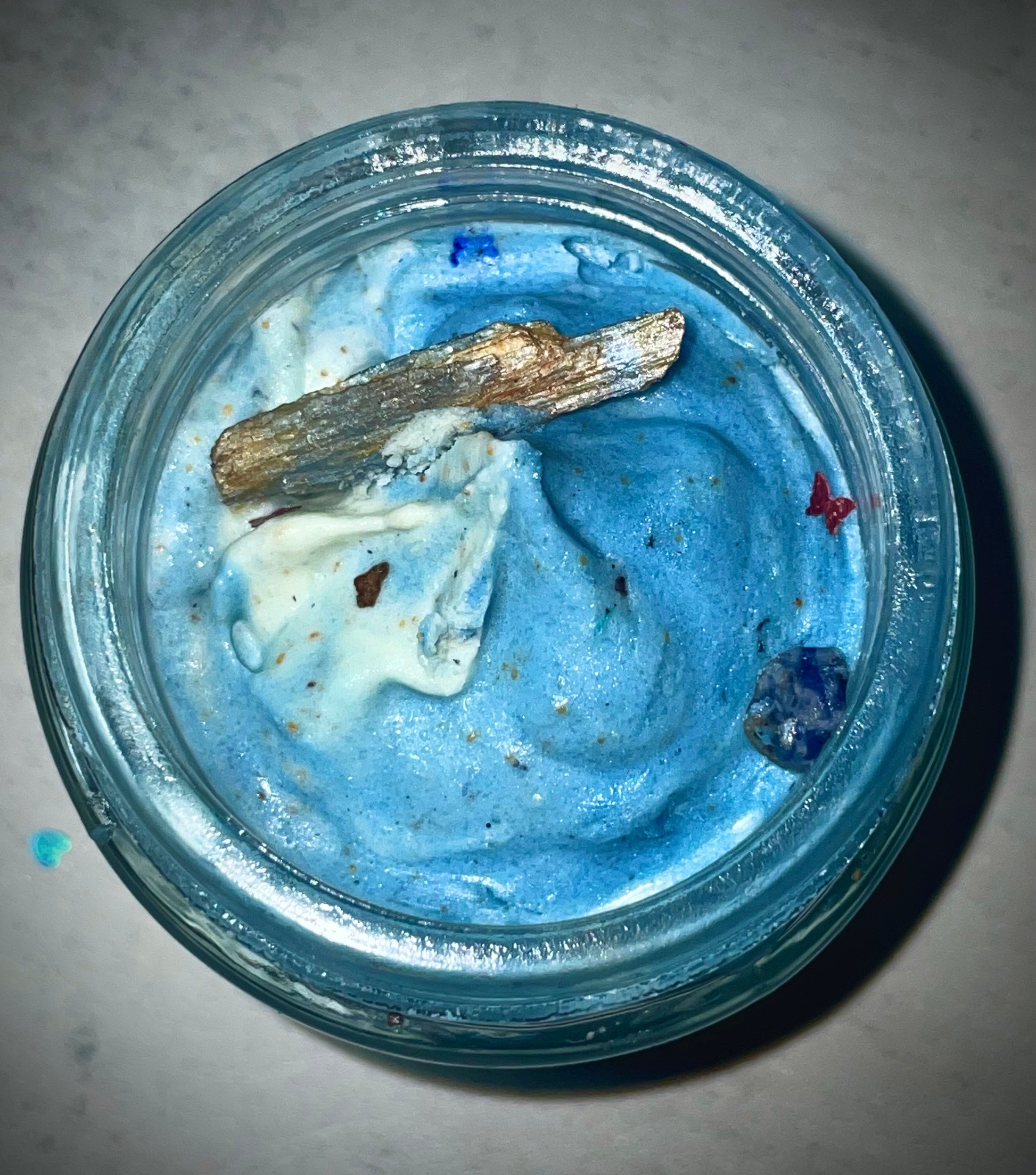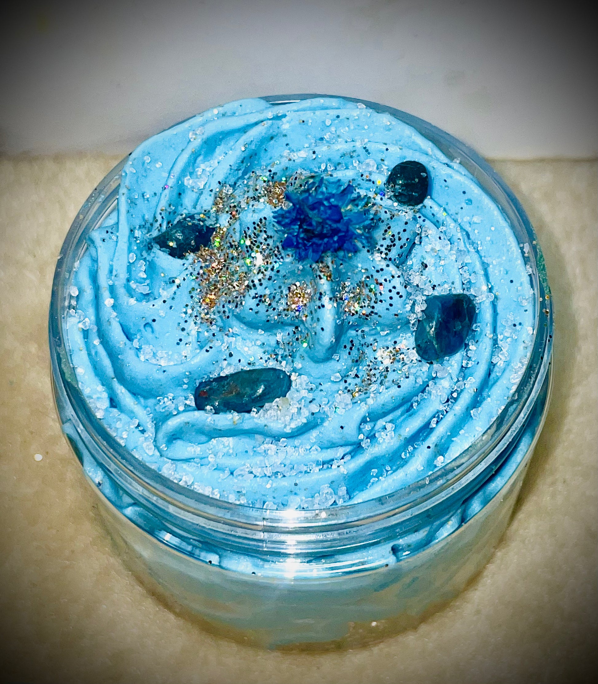 Our whipped emulsified scrubs  are uniquely made with more than  exfoliating and moisturizing benefits…the intent behind these products Is to help cleanse Your energetic aura field, help unblock blocked chakras. The rose quartz crystal being infused in most of the products is to promote self love, heal heart ache & feelings of grief. Rose quartz purifies and opens the heart at all levels, while delivering inner healing and clear complexity. This 'emotional healer' can be used to reduce and release impurities and stress in the skin. Its best for detoxing, lifting, and softening fine lines and wrinkles, alongside draining toxins and negativity. Our scrubs use one of the following for a exfoliate