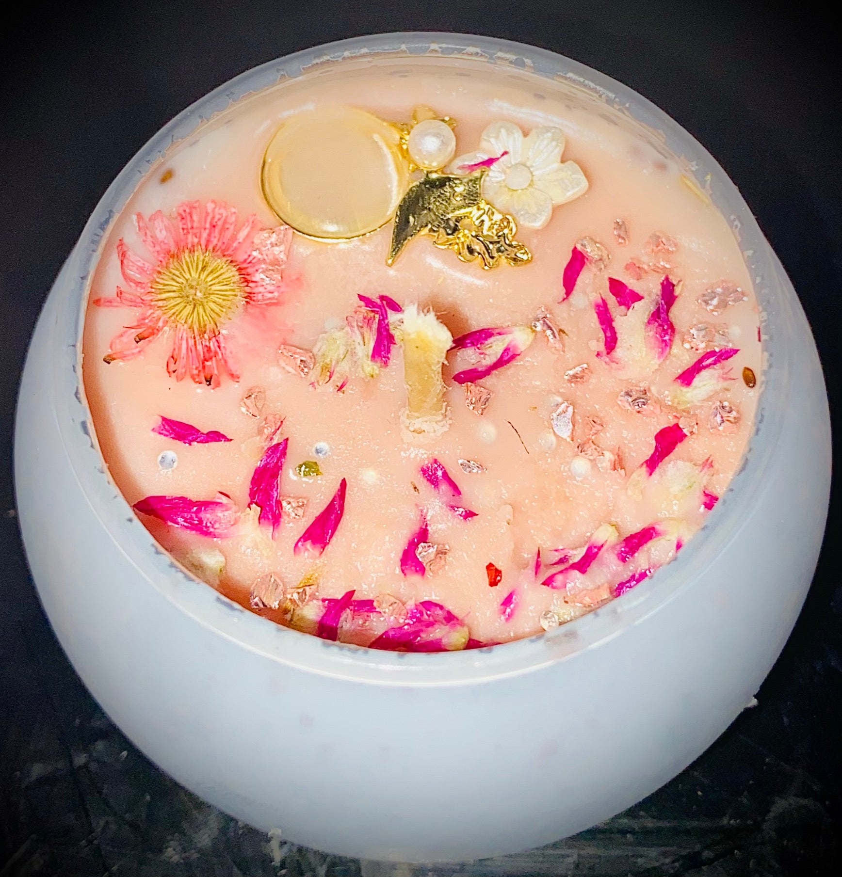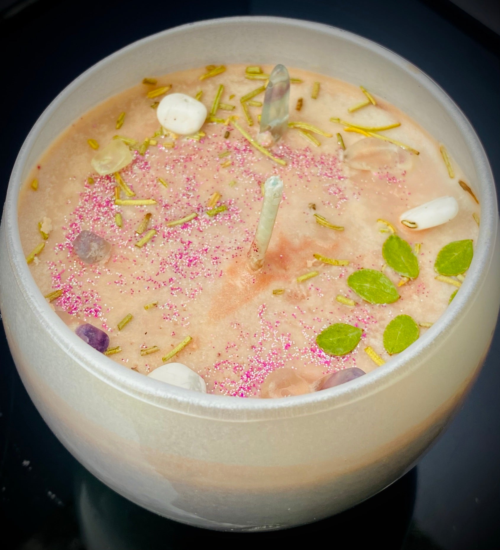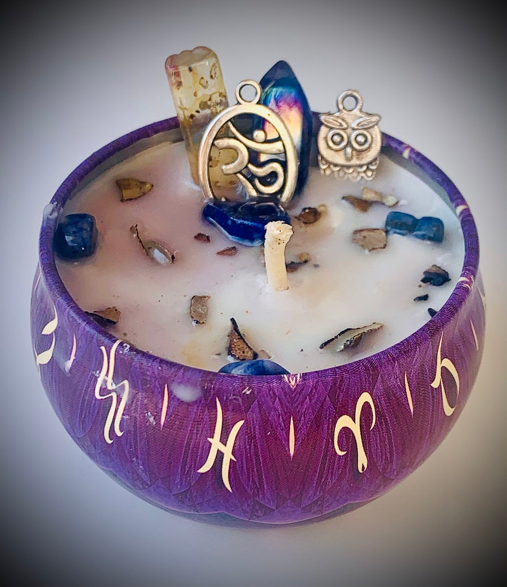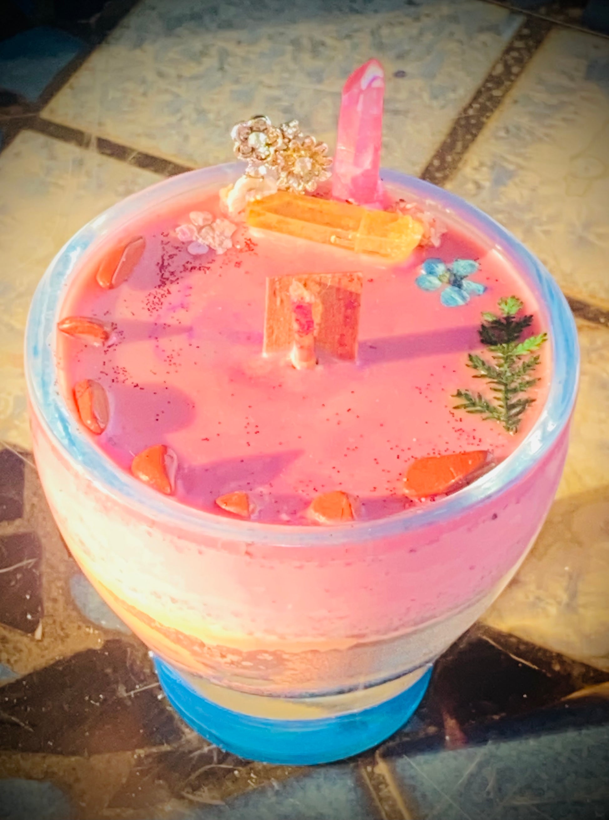 Our line of intention candles are hand made with either 100% all natural soy or beeswax. Intention candles are used to manifest wishes and desires. They are a way to bring your dream life into reality. It’s all rather simple. When you light it, it illuminates your intentions, and when you meditate on it, it releases a message and sends your energy out into the universe. On a symbolic level, lighting a candle represents the five elements: earth, water, air, fire, and spirit. The wick and base signify earth and are vital for keeping the flame steady. The wax, which transforms from a solid to a liquid and then to gas, emulates water. Oxygen, representative of air, keep the flame lit. The flame is obviously fire (the element of transformation and rebirth). And lastly, spirit is represented when we focus our intention into the candle and infuse it with our energy.