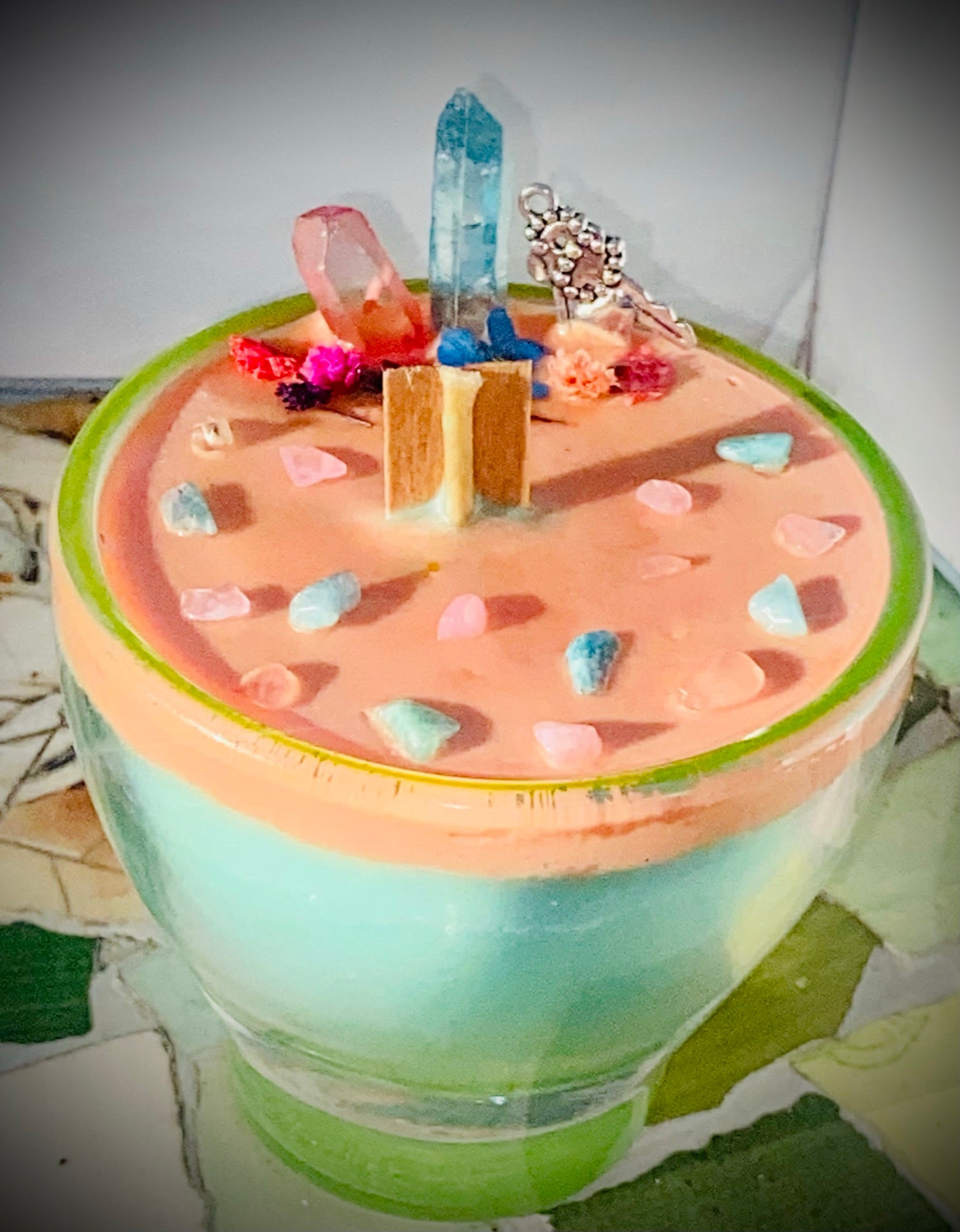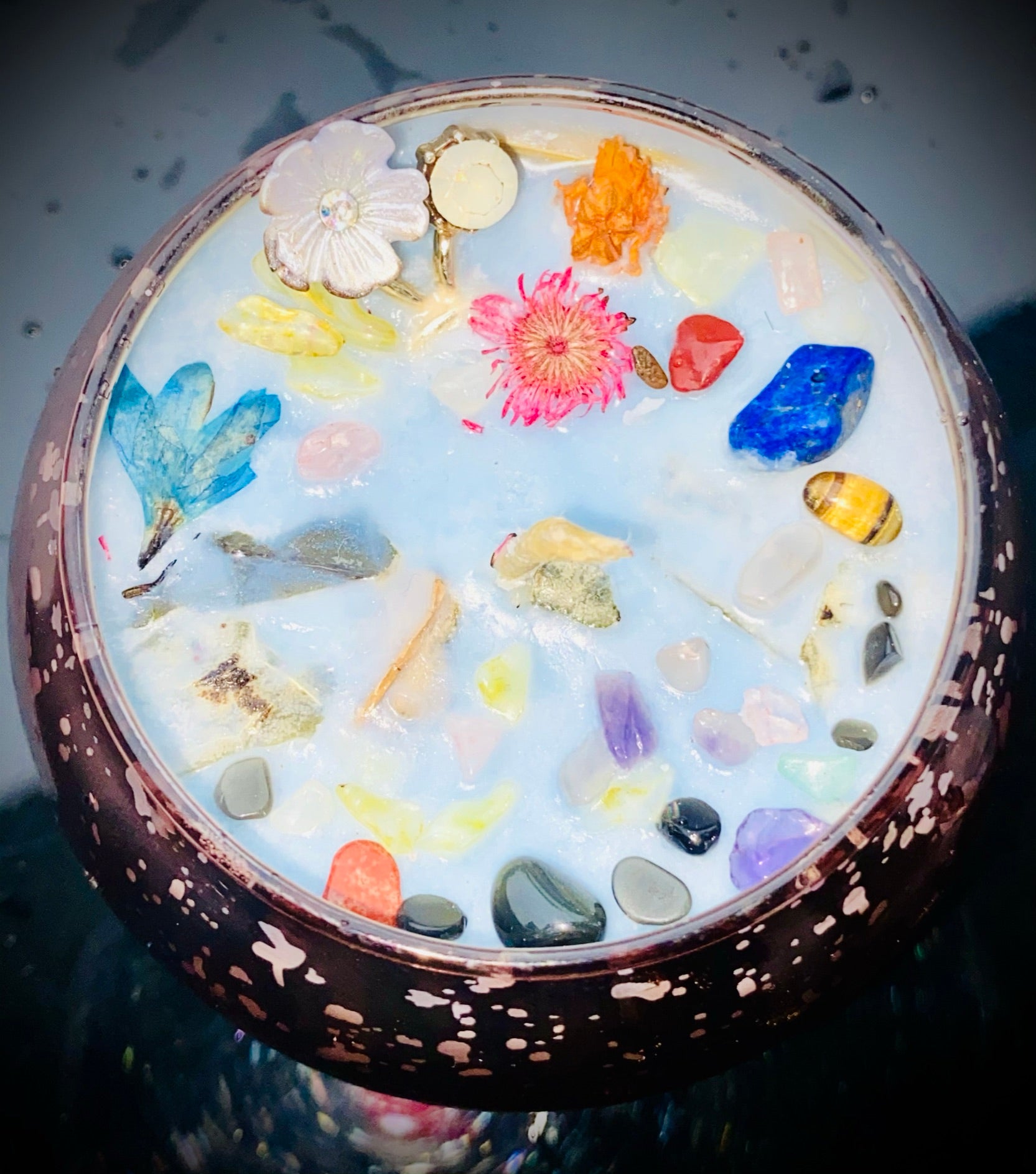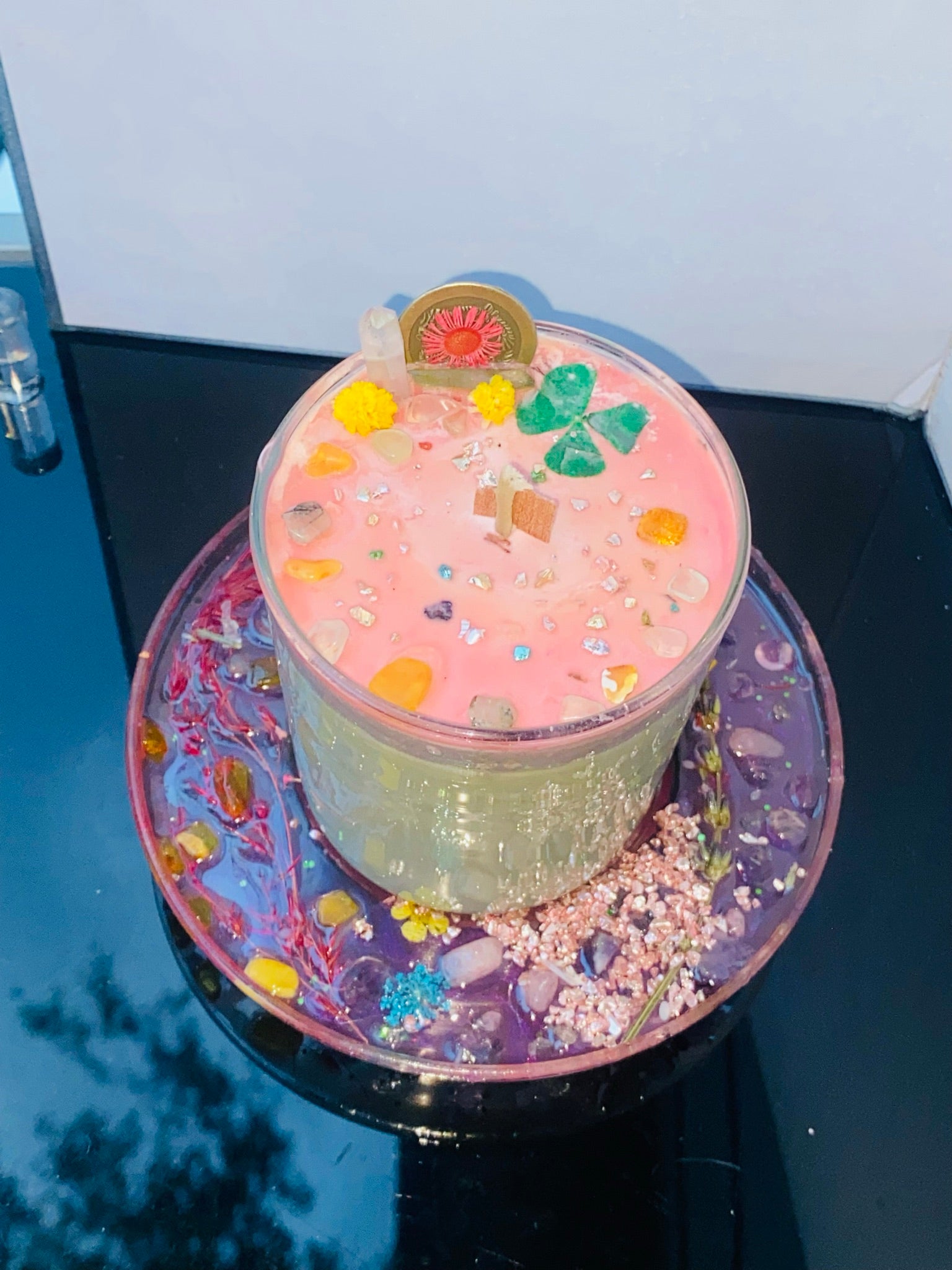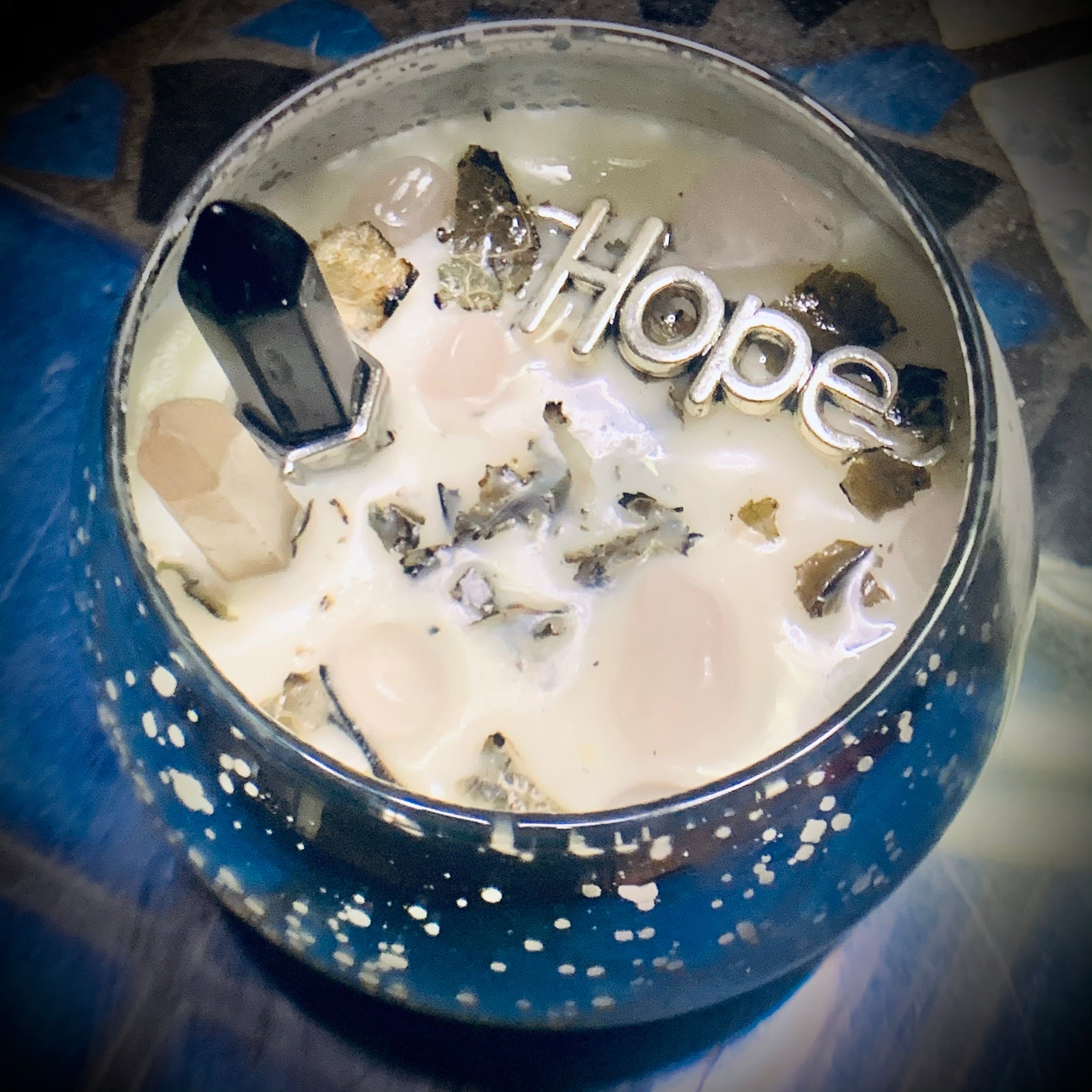 Our line of intention candles are hand made with either 100% all natural soy or beeswax. Intention candles are used to manifest wishes and desires. They are a way to bring your dream life into reality. It’s all rather simple. When you light it, it illuminates your intentions, and when you meditate on it, it releases a message and sends your energy out into the universe. On a symbolic level, lighting a candle represents the five elements: earth, water, air, fire, and spirit. The wick and base signify earth and are vital for keeping the flame steady. The wax, which transforms from a solid to a liquid and then to gas, emulates water. Oxygen, representative of air, keep the flame lit. The flame is obviously fire (the element of transformation and rebirth). And lastly, spirit is represented when we focus our intention into the candle and infuse it with our energy.